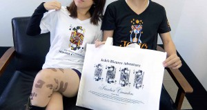 (今さらですが。。。)夏コミのジョジョのグッズTシャツ2種類とトートバッグのデザインをさせていただきました。 AGのジョジョ好きに着てもらい、撮影! シビれる!あこがれるゥ!