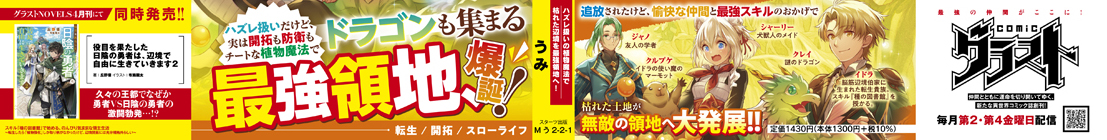グラストノベルス『スキル『種の図書館』で始める、のんびり気ままな領主生活〜転生したら「植物強化」しか取り柄がなかったけど、辺境開拓には充分規格外らしい〜』第1巻